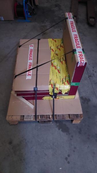 Cassa legno con all’interno piano vetro (imballato in sicurezza) cm. 240 x 150 x 30h peso 150 kg circa Non su pedana 2. Bancale legno cm 80 x 120 x 100h peso 200 kg circa |