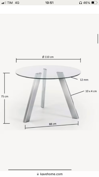 1 tavolo in vetro 110cm