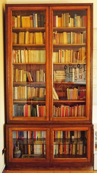 | due librerie in legno con porte in vetro, separabili